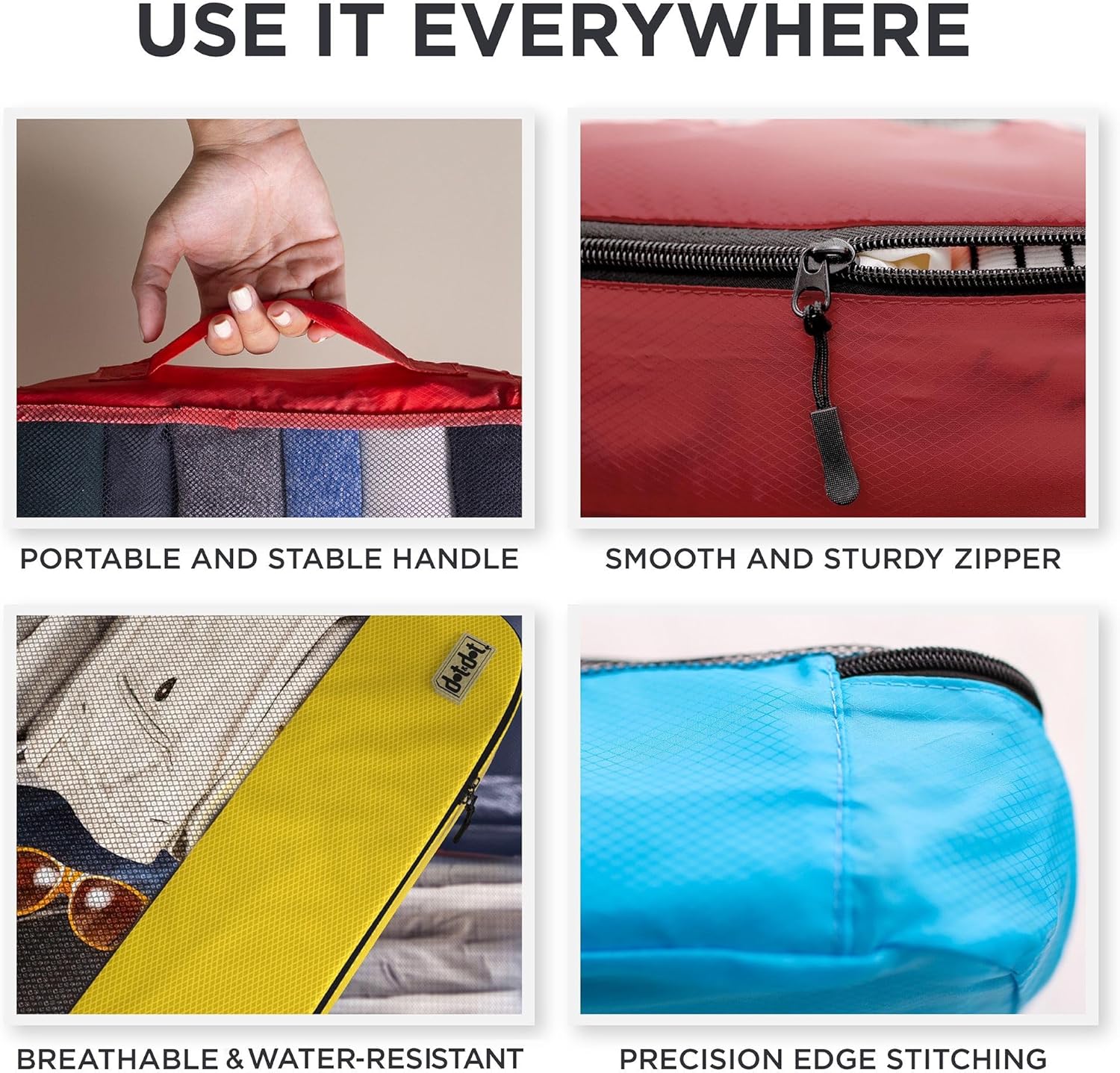 Whether you’re going on a weekend getaway or a month-long expedition, the Dot&Dot Packing Cubes are perfect for organizing clothes, shoes, toiletries, and more. Say goodbye to messy suitcases and hello to hassle-free travel. Elevate your packing game with Dot&Dot and enjoy a stress-free travel experience!